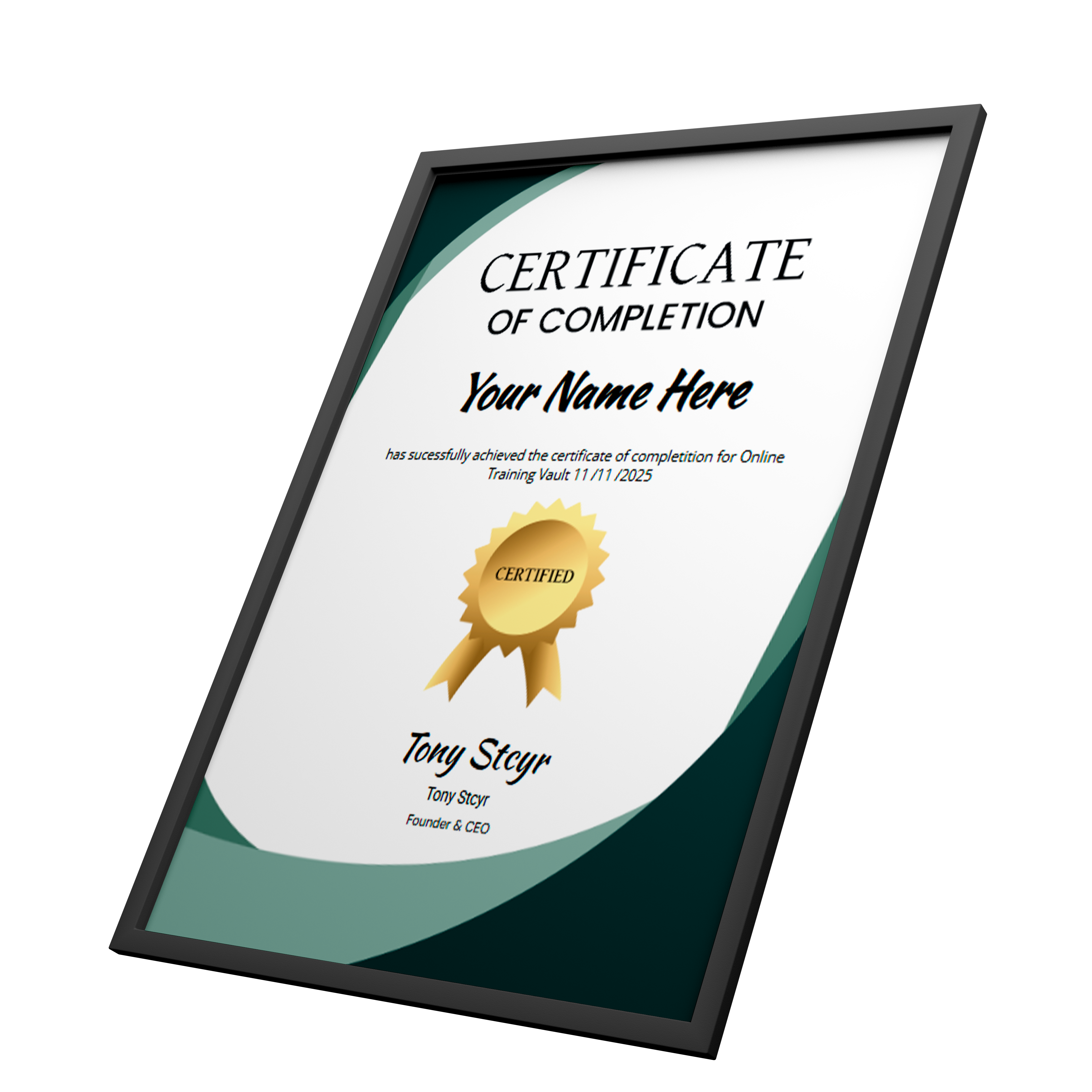 Every course in our program comes with an official Certificate of Completion, recognizing your dedication and expertise in mastering essential skills. Whether you're boosting your career, expanding your business, or establishing authority in your industry, this certification proves your commitment to growth and success. Showcase your achievement with pride and let your credentials speak for themselves.